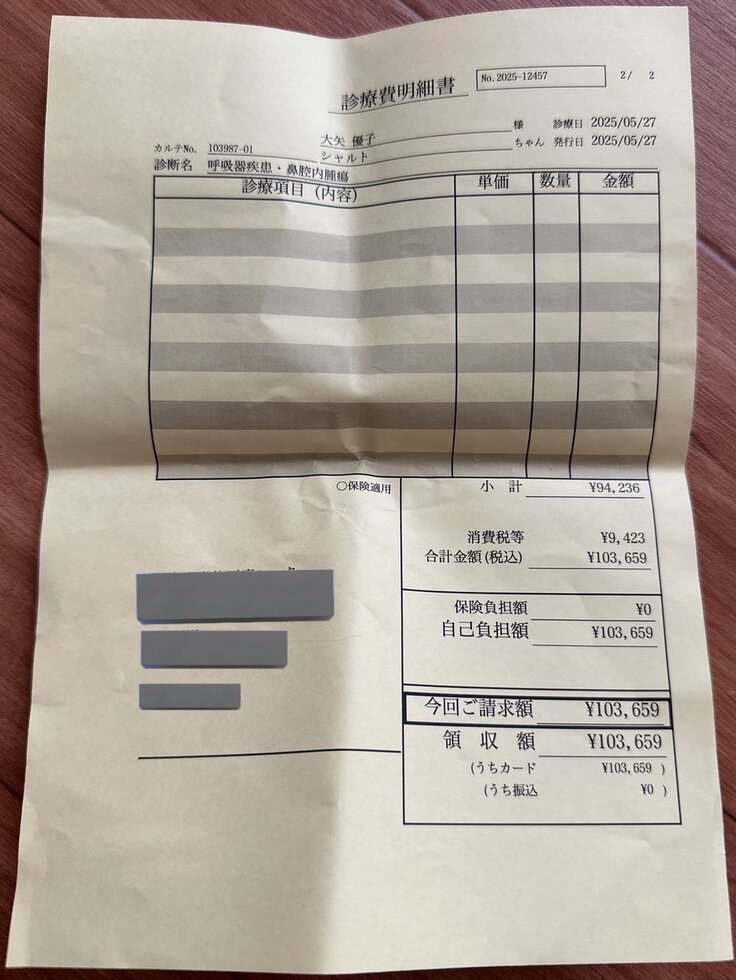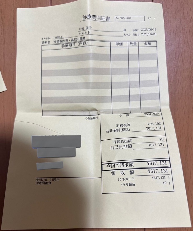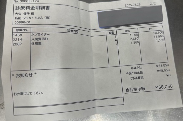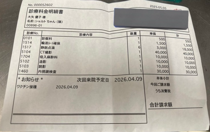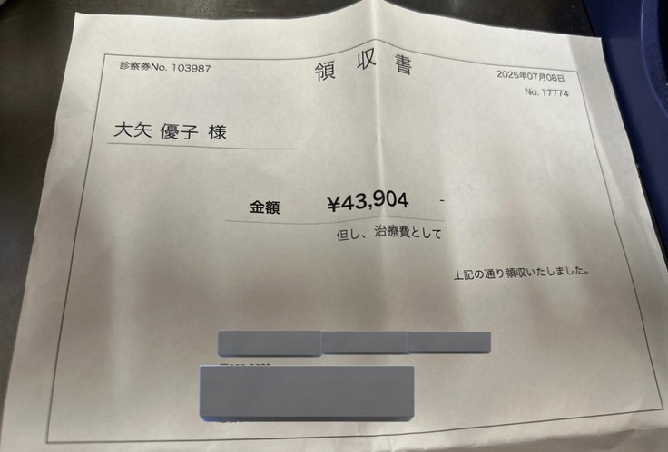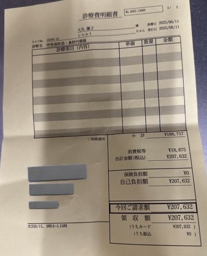 今までの治療費︰8万7849円 (B病院)