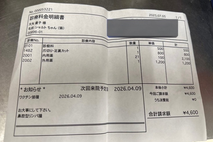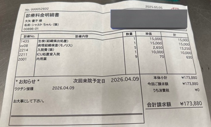 ページ上に掲載している診断書や診療明細書などの資料は全て動物病院から掲載の許諾を得ております。