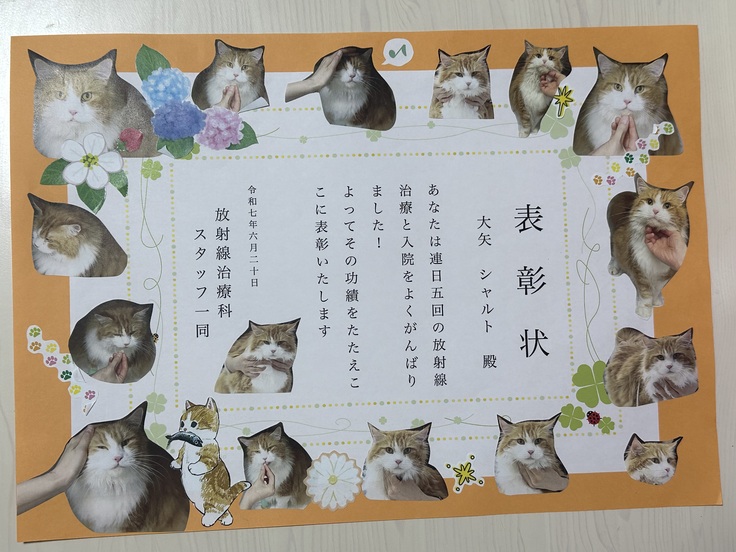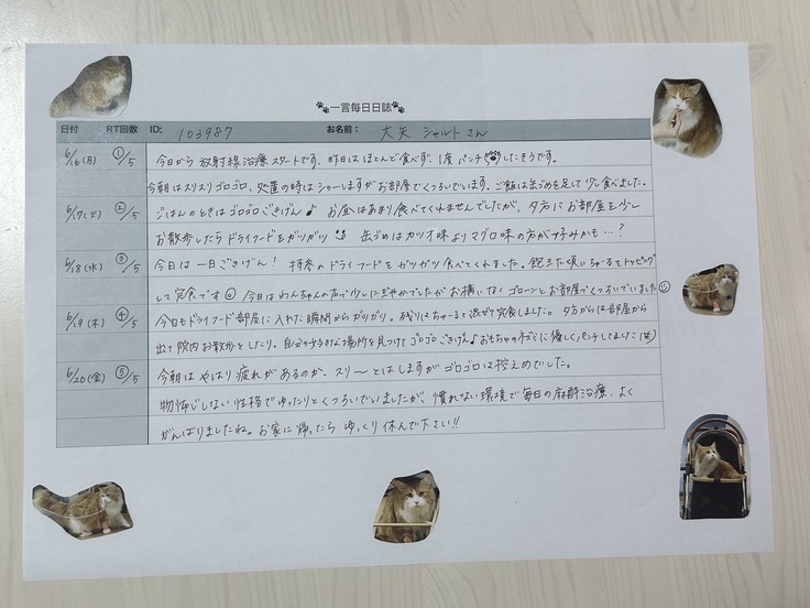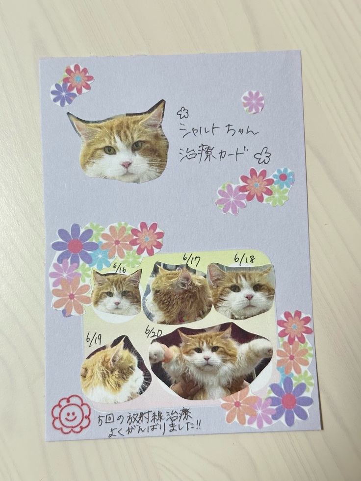 A病院のスタッフさんが放射線治療中のシャルトの様子を写真と文章に残してくれました。頑張っているシャルトの姿を見て涙です😭