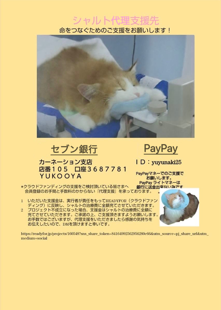 万が一シャルトが亡くなってしまった場合、いただいた支援金については、返金はせずこれまでの治療費に当てさせていただきます。