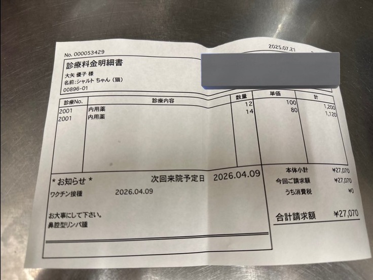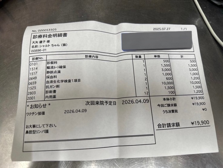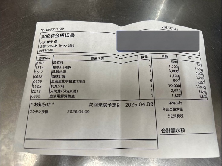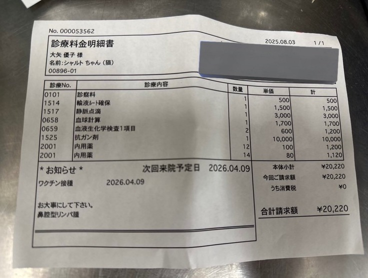 今回も明らかな副作用はなく食欲もいつも通りで無事に終わりました。