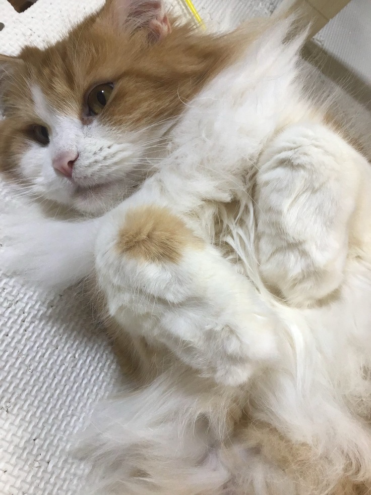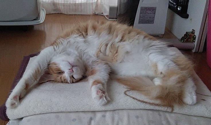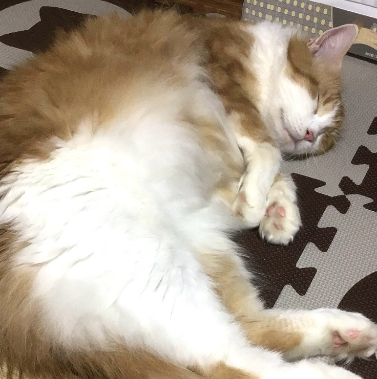 家に来て数日しか経っていないにも関わらず、部屋の真ん中でお腹を見せて寝る子でした。