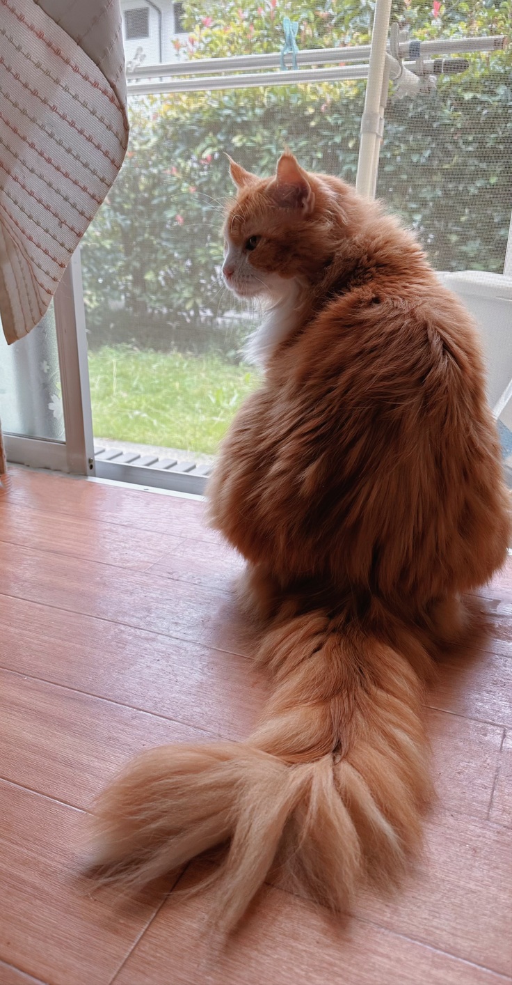 今日のシャルトは、朝から日向ぼっこをしていました。網戸にすると、心地よい風に当たりながら鳥の鳴き声や風で草木が揺れる様子をしばらく眺めていました。