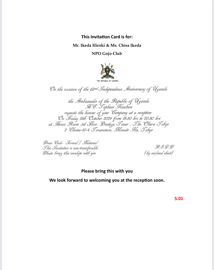 🇺🇬ウガンダ共和国レセプションパーティー