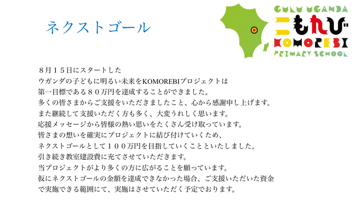 本クラブはウガンダにNGOを立ち上げKOMOREBI小学校を建設しています。