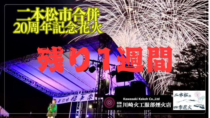 二本松市合併20周年の記念花火をぜひ!市民の皆さん、二本松にゆかりのある方々と共に打ち上げたいと思っております。