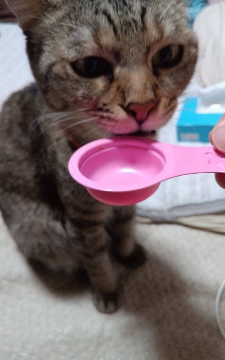 飲むのが嫌みたいですが……頑張って飲めています!