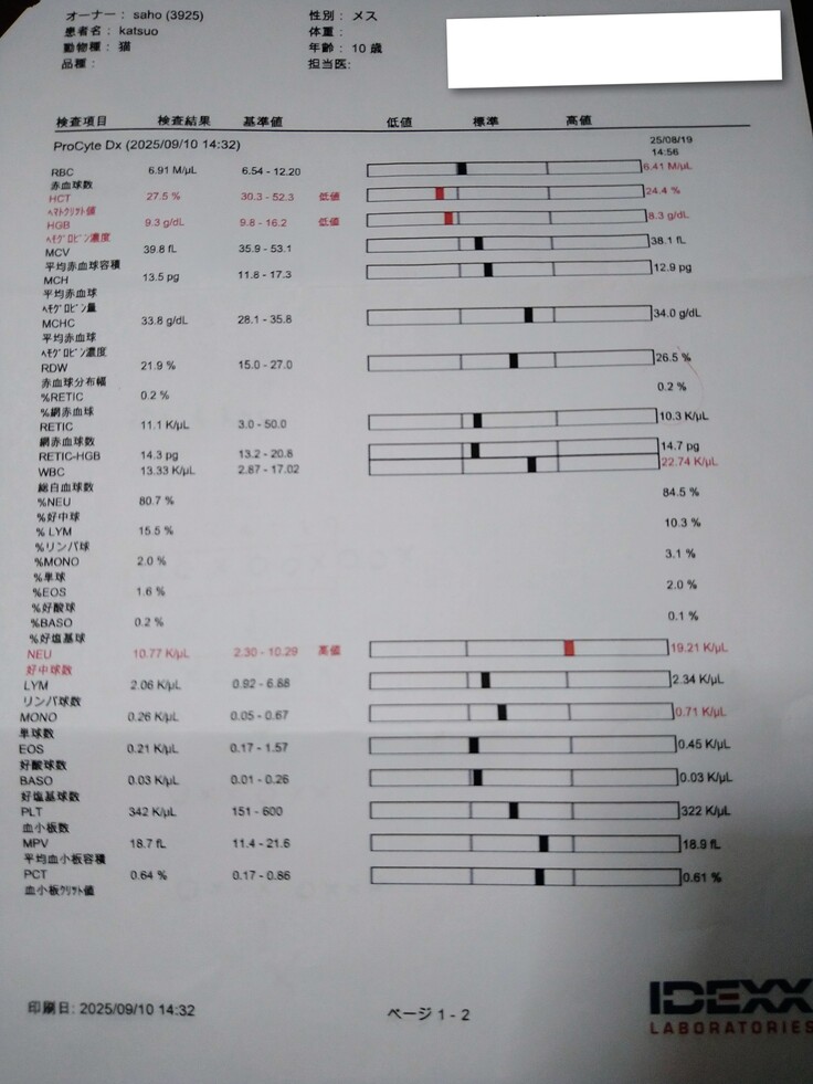 SAAが正常値に下がったので、これから徐々に良くなっていくだろうという事でした。