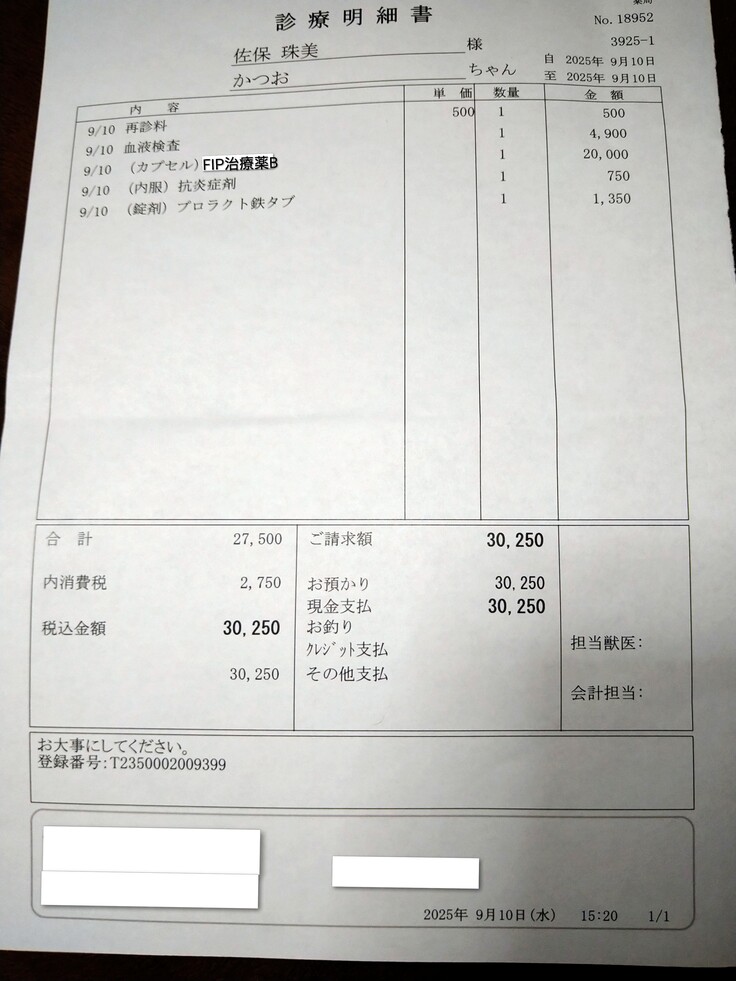 8月頭にステロイドを減らしてFIPの症状等が悪化してしまったので、また悪化しないか少し心配もありますが、かつおちゃんの様子をよく観察しながら、経過を見ていきたいと思います。
