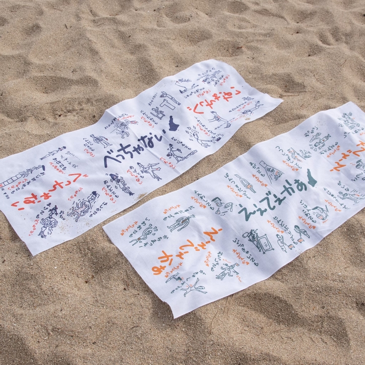 淡路島アートセンター制作の「兵庫県淡路島弁手ぬぐいセット(2種 各1点ずつ)」をお届け。