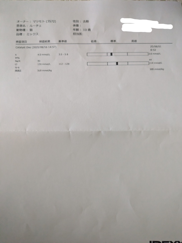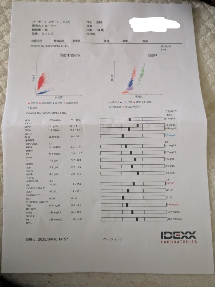 肝臓の数値は(下から3番目と6番目)肝臓のお薬を頑張って飲んでいたため