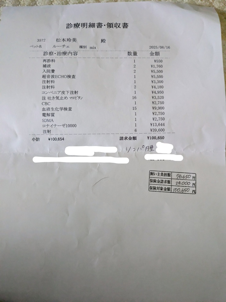 ※治療費はいつも無理を頼んで毎月1日支払いにさせてもらってます。