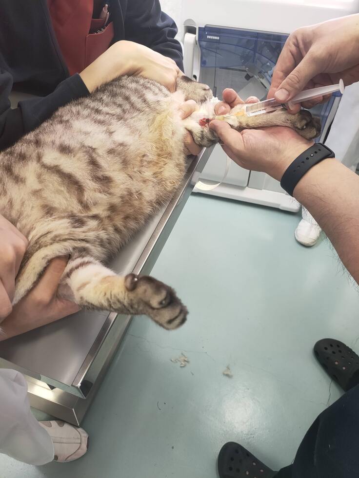 先生と看護師さんだけではルーチェが大暴れして手が付けられないので、入院前に血液検査、抗がん剤、点滴をしていただいてます。抗がん剤を毎回特殊なもの使っているのと入院枠しか残っていないのでこの方法を取らざるえません。