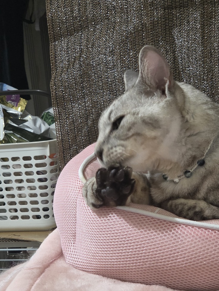 昨晩のルーチェです。ちょっと不機嫌でしたが体調も悪くなく、抗がん剤による副作用も抜けたようでご飯も食べています。