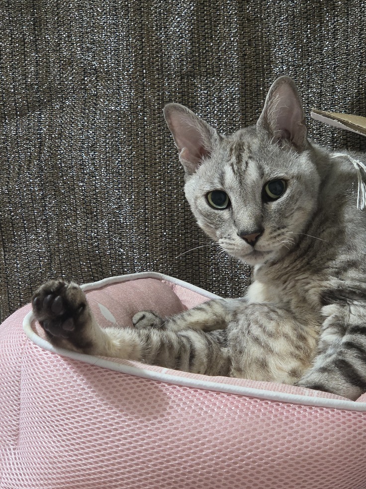 丸々していたお顔も、太かったしっぽ、ムチムチしていたボディーも痩せてしまい別人みたいです。抗がん剤治療で一時期は5.6キロまで痩せてしまいましたが今は6キロまで体重は回復しています。やはり健康的な痩せ方と違い病的な痩せ方は体力も奪われるため心配になります。