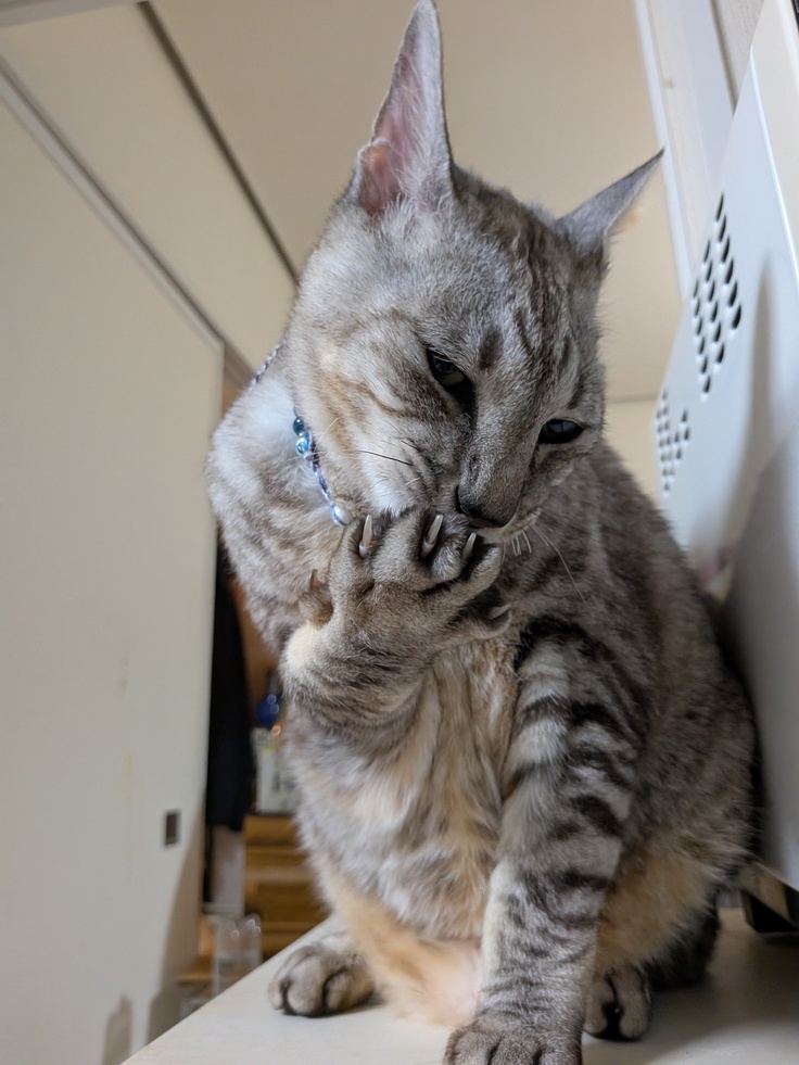 今日も変わりなくご機嫌です。抗がん剤で抜けていたおひげもチョボチョボと生えてきました。