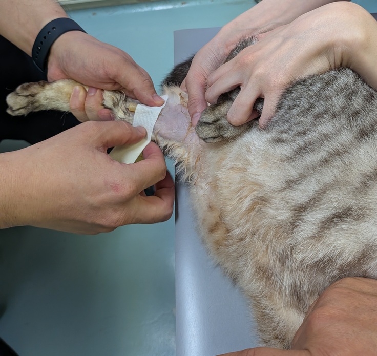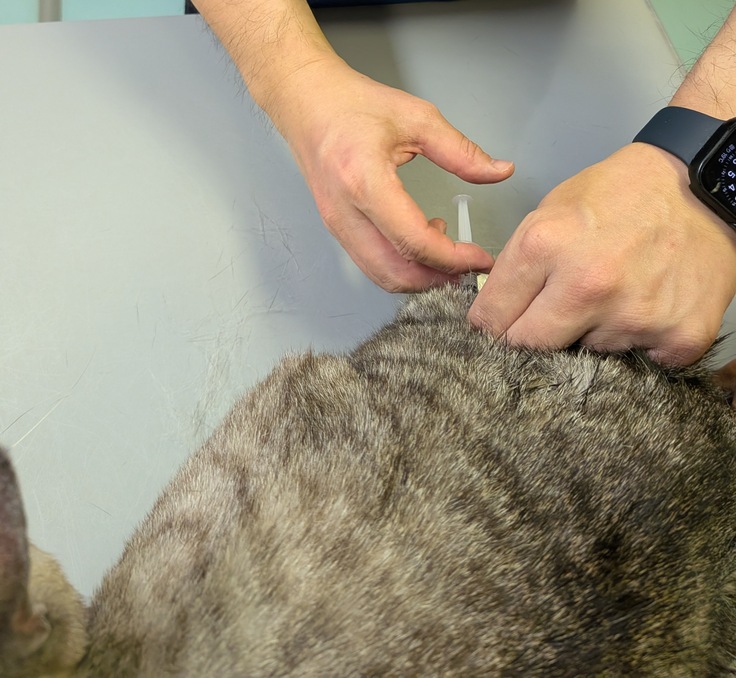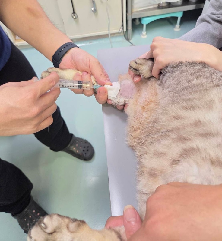 ルーチェは腕に注射をしようとすると呼吸困難になりチアノーゼが出てしまったことがあるので腕からはせず足にしていますが、同じ場所に注射をしていると血管が固くなり逃げるようで今日は3回失敗してしまいました。