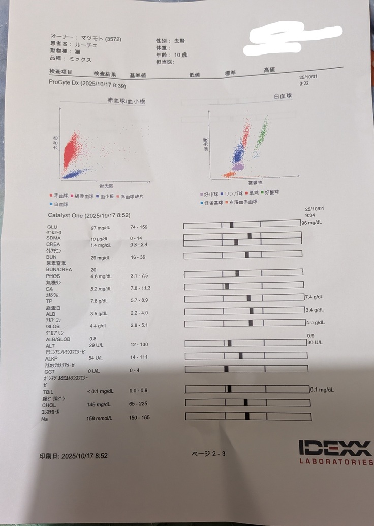 ↓今日の血液検査の結果です。高い数値は全くなくオールクリアでした。