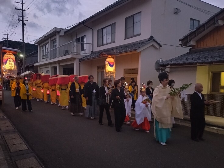 昨日は、朝方あいにくの天候でしたが、着御祭が始めるころには回復し、予定通り午後5時頃から、正遷座祭を催行いたしました。