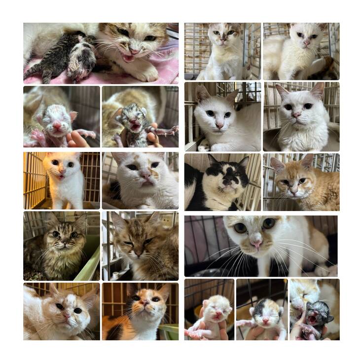 2025年8月21日と22日に千葉県我孫子市で起きた70頭の多頭飼育崩壊現場から14頭の成猫を引き取りました。