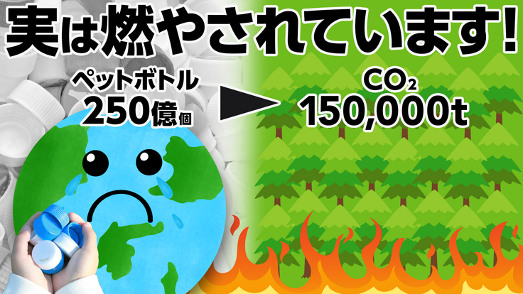 日本国内で1年間に消費されるペットボトルは250億本と言われています。つまり1年間に約250億個のペットボトルキャップが燃やされているということになります。