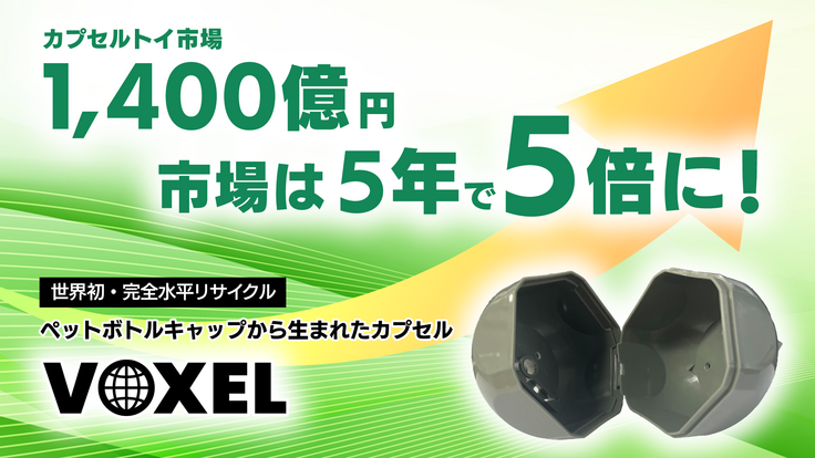 成長を続けるカプセルトイ市場の流通に投下できる商品を考えて私達はペットボトルキャップからカプセルトイのカプセルを生成することに成功しました。ペットボトルキャップから生まれたカプセルは「Voxel」と名付けられました。