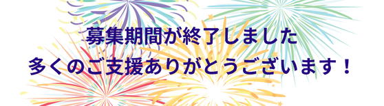をもちまして、募集期間を終了いたしました。たくさんの応援とご支援、本当にありがとうございます。