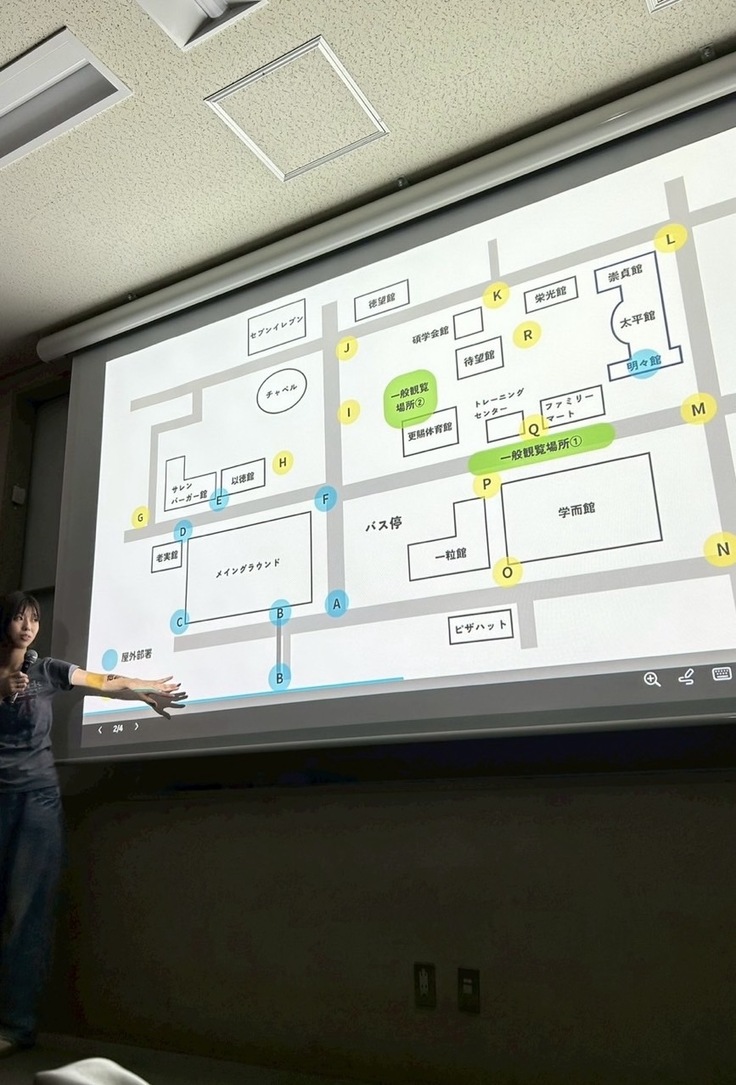 こちらの写真は、花火プロジェクトを一緒に支えてくれている屋外部署に向けて、各花火警備の注意点を話している様子です!