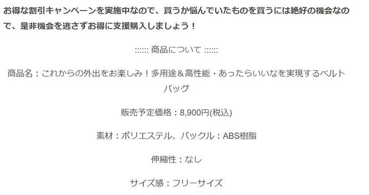 【先着200名様】「これからの外出をお楽しみ!多用途&高性能・あったらいいなを実現するベルトバッグA」早期ご支援特割【35%OFF】一般販売予定価格:8,900円→5,785円(税込・送料込)