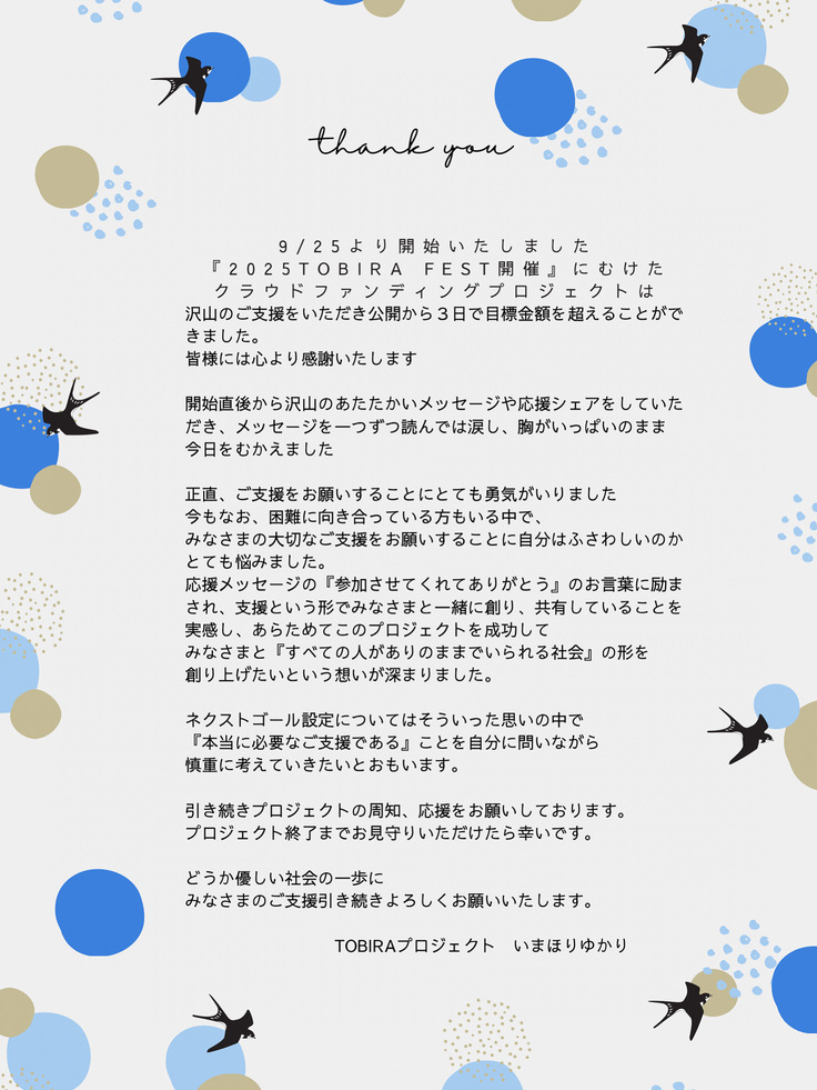 TOBIRA応援コース(3千円)|リターン不要な方へ