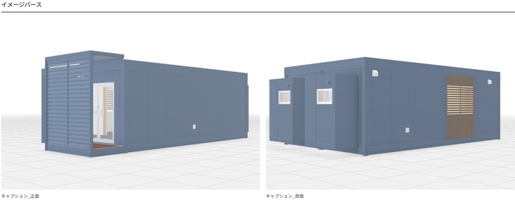 10~15坪のプレハブ1棟(エアコン・冷蔵庫・トイレ・シャワー・ネット環境付)