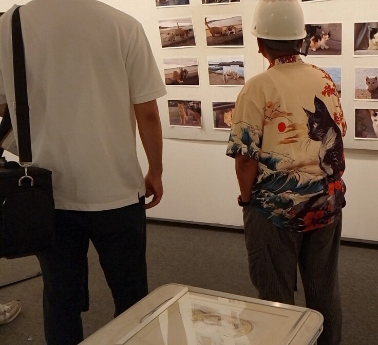 はりま動物愛護フェスのアニマルアート展で猫サンバヘルメットをかぶって動物愛護を熱弁する80代のリーダーの姿。