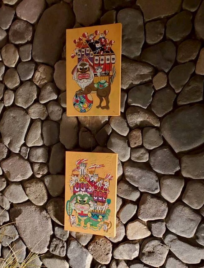 満月の神秘的な雰囲気の中、楽しげな「猫ダンジリ」作品を飾ってもらって有り難い事です。