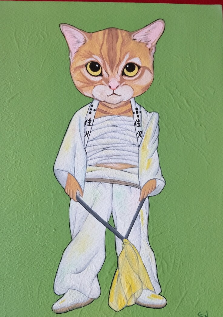 その だんじり祭りに参加する子供の姿を猫作品として表現してみました。