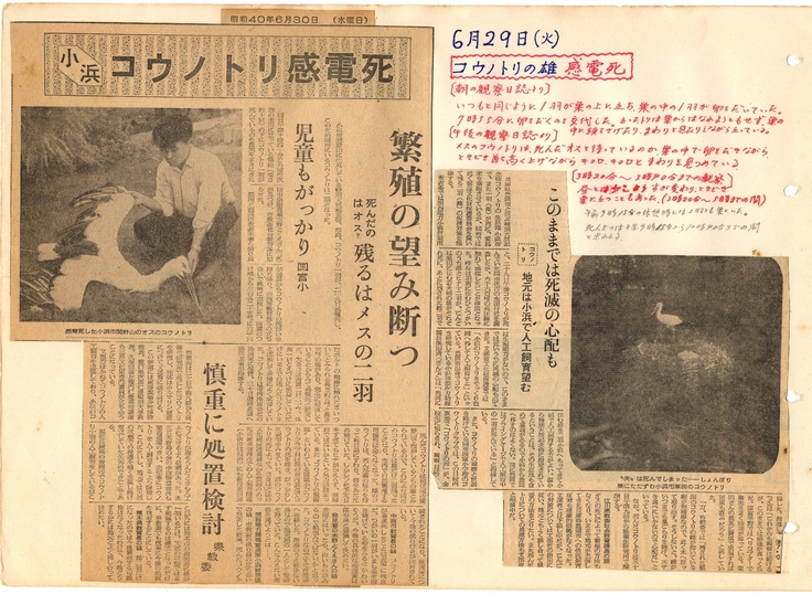 地区内の国富小学校では、昭和39年に「コウノトリ観察クラブ」が結成され、小学校だけでなく国富地区をあげて、コウノトリの保護・保全活動が行われてきました。当時の観察記録や剥製は、今も大切に保管され、コウノトリ絶滅の過程を伝える大切な資料となっています。