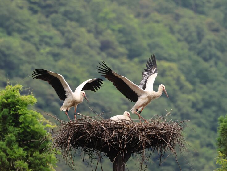 このように、平成23年からのコウノトリを呼び戻すための自主的・積極的な環境整備活動の成果もあり、令和3年に、57年ぶりとなるコウノトリのヒナの誕生と60年ぶりの巣立ちを見守ることができました。