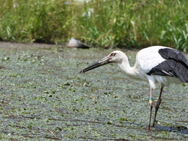 餌を採るコウノトリ