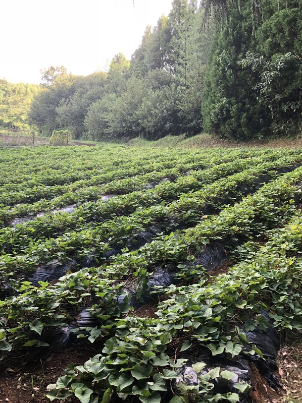 今日は前回のお伝えしたさつまいもがいまどうなっているかをお伝えしますね。栽培をお願いしてある農家さんの畑へ行ってきました。今年は、大雨や台風の影響で生育を心配していましたが、今のところ順調のようです。応援指定ただ入る農家さんのおかげです。ありがとうございます。