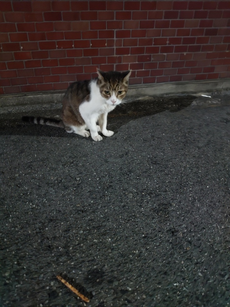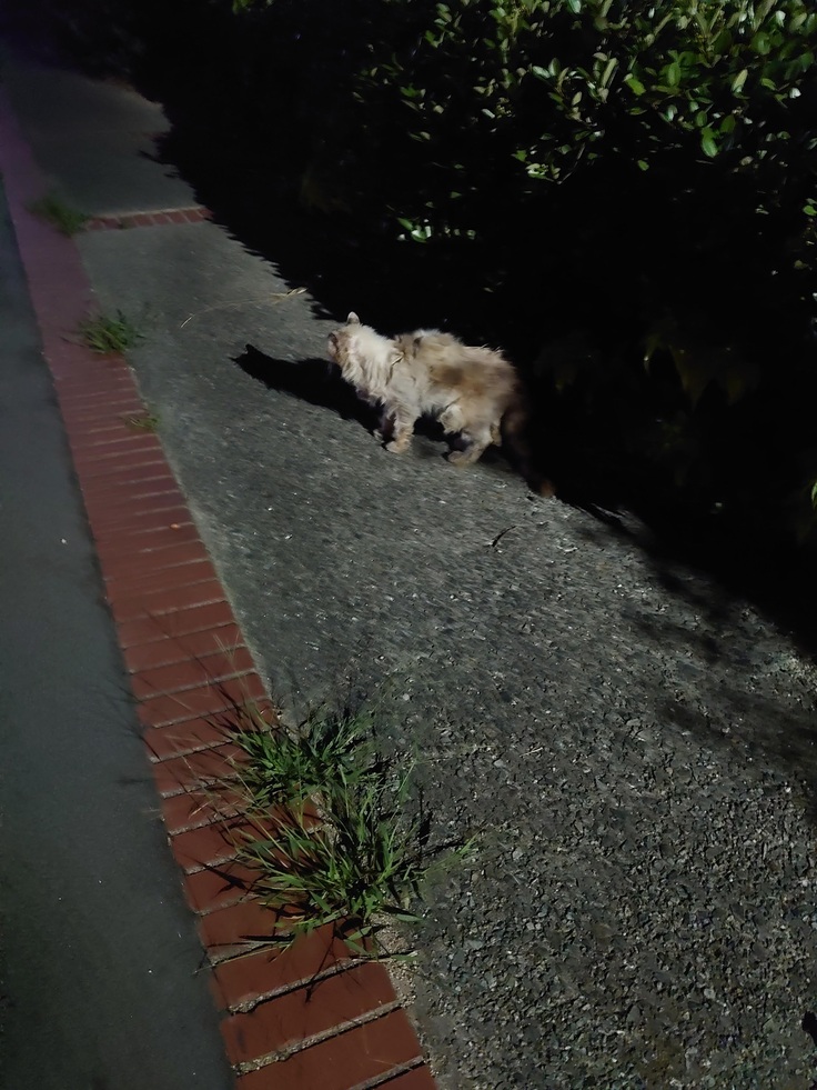 昔地域の住人に頼まれて捕獲し、TNRした長毛のニャンコ。しばらく見なくなり亡くなってると思ってた長毛のニャンコちゃん、皆様遠目ですが、