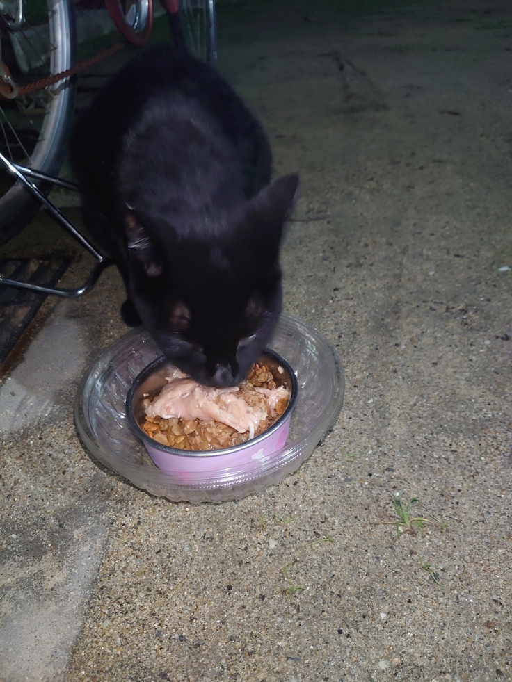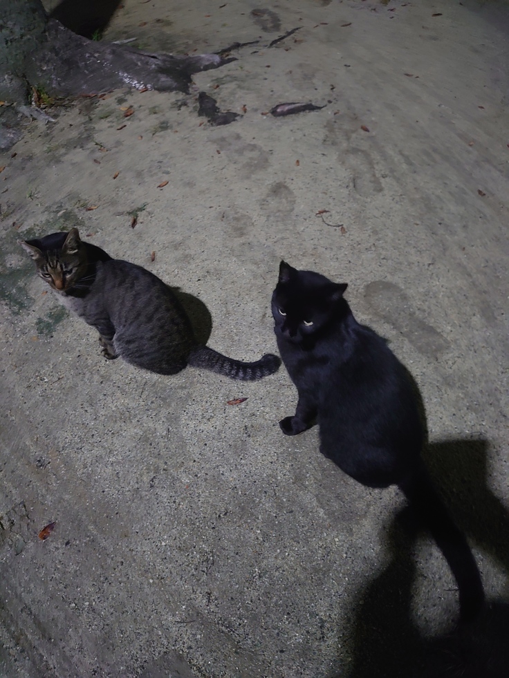夜分遅くになります。深夜公園に戻ってきたら、あれ黒猫ちゃんが