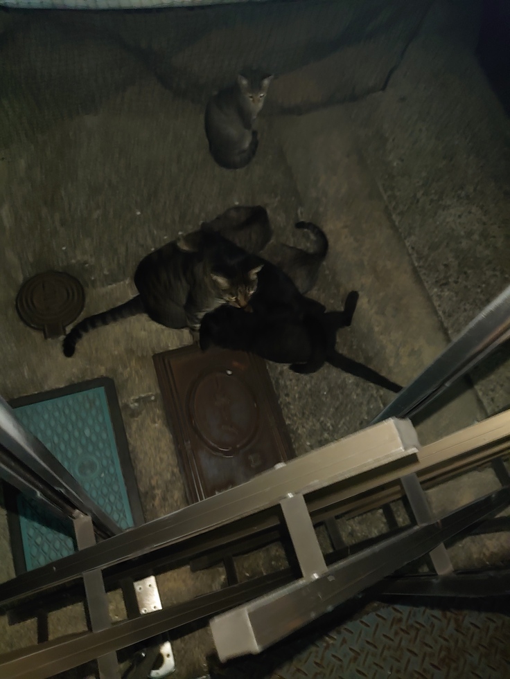 昨夜、母猫ファミリーが餌場の前の駐車場にいました。