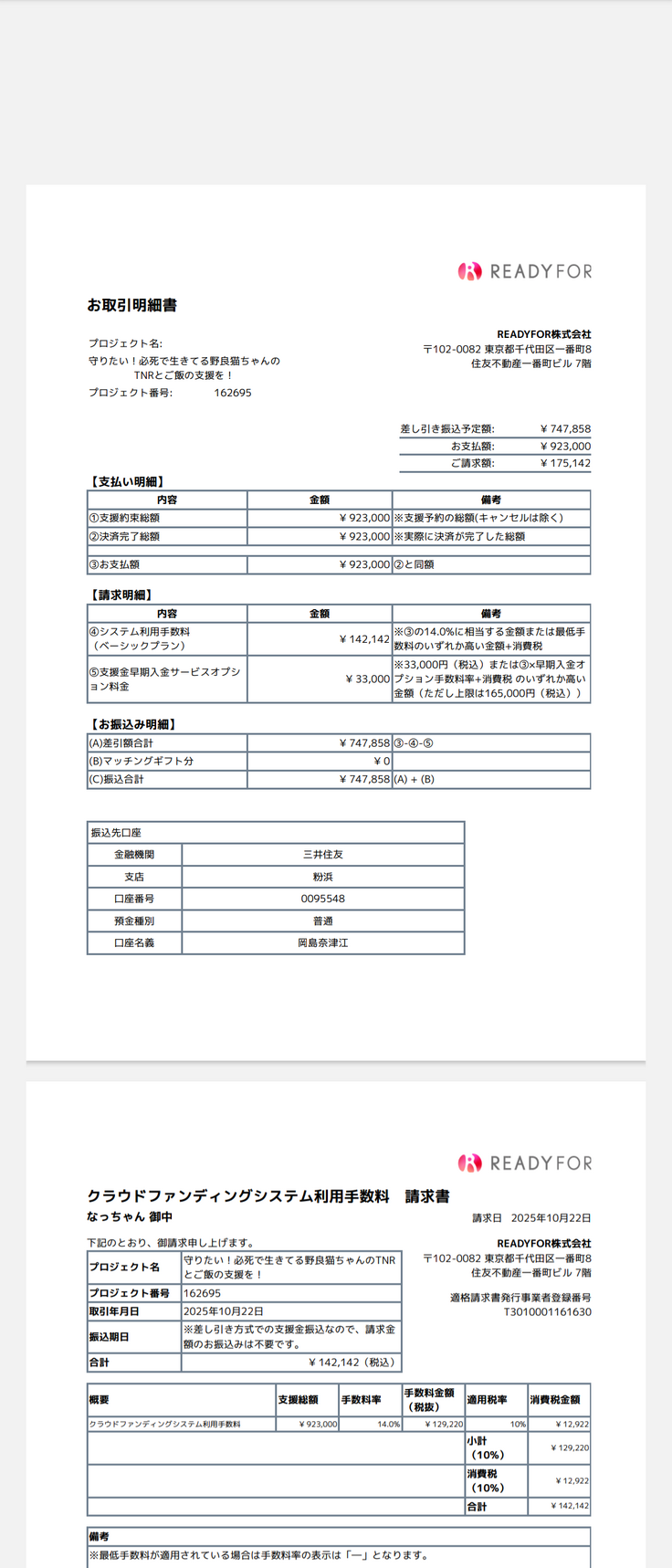 支援金が沢山集まりましたので1月末までには使いきれないと思いますので