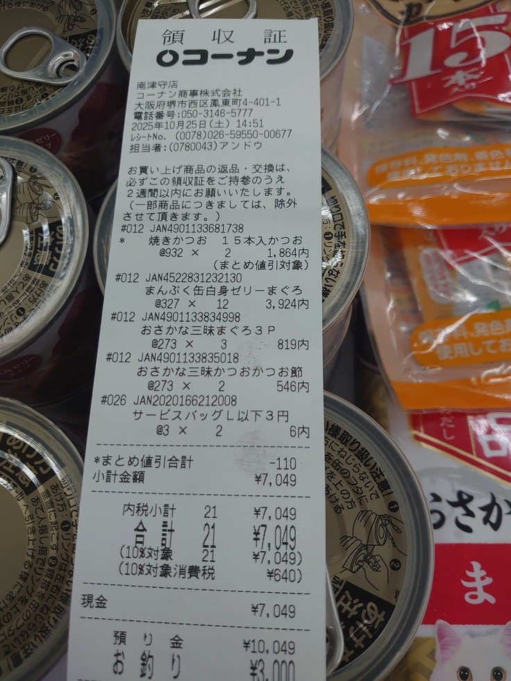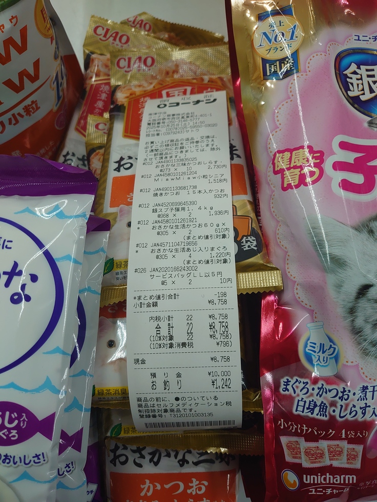コーナンまで友人についてきてもらい、猫ちゃんのご飯を買いに行きました。