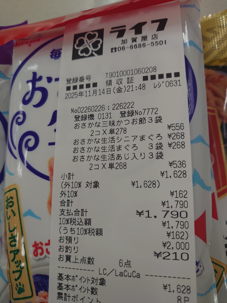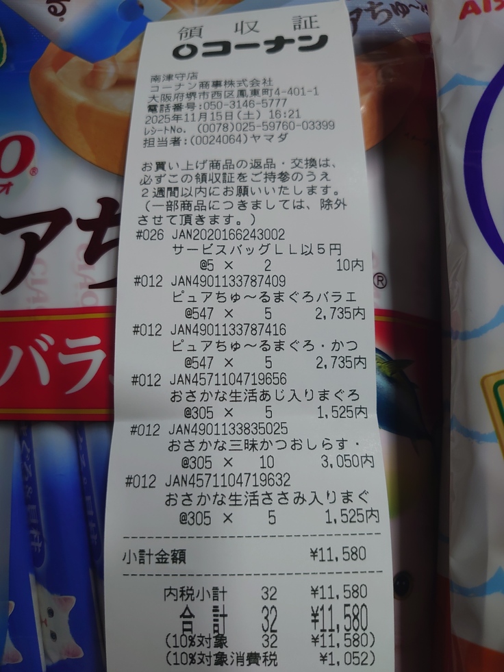 昨日の夜の餌やり先での買い物分とですいません。