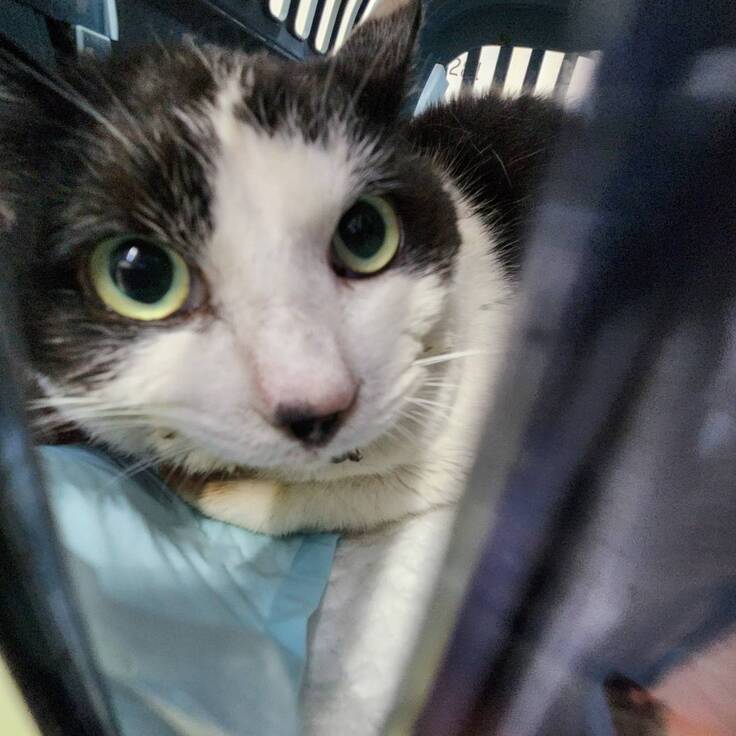 ご飯を毎日あげていた事もあってある程度の人馴れはしており、保護をする際直ぐにキャリーケースに直接入れることができたので、そのまま病院へ連れていく事にしました。