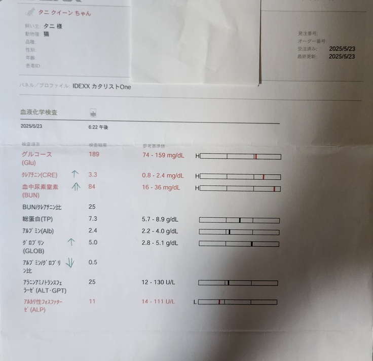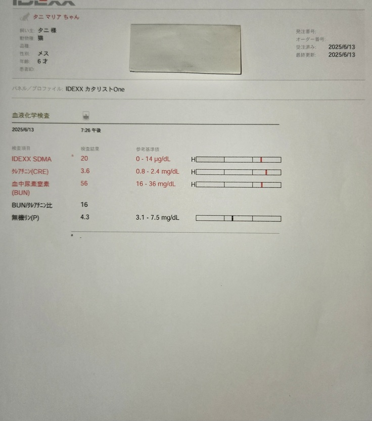 ですが、ホッとしたのも束の間で血液検査の数値の結果、まさかの腎不全であることが分かりました。