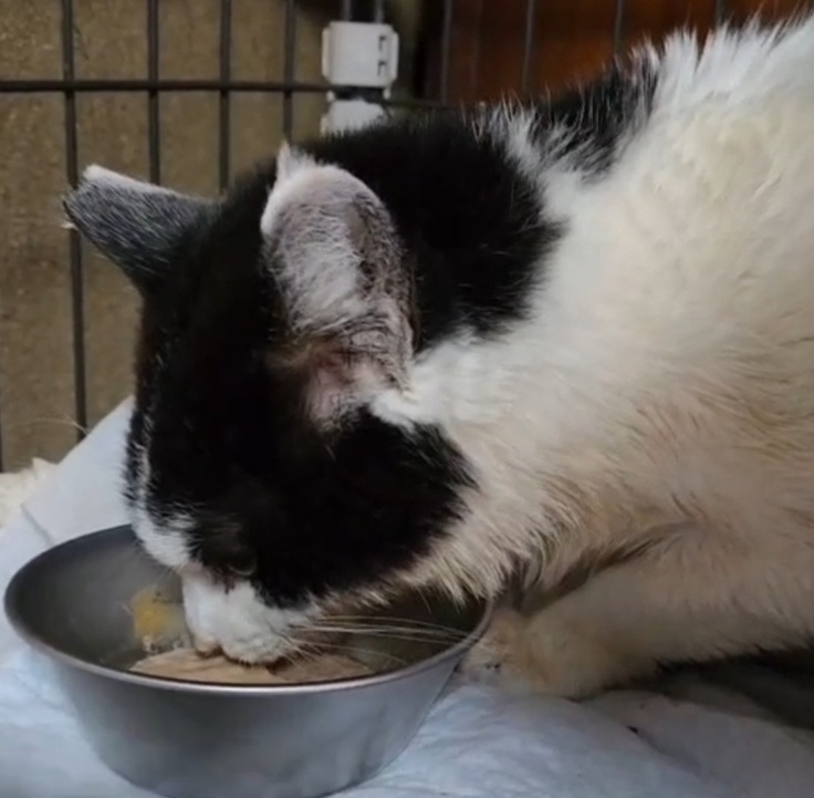 朝晩は療養食のk/d缶+牛乳をシリンジで、後はタイミングを見て高カロリーの介護食を食べさせています。