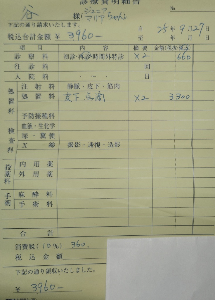 (今日は一緒に病院へ行ったジュニアと同じ領収書です)