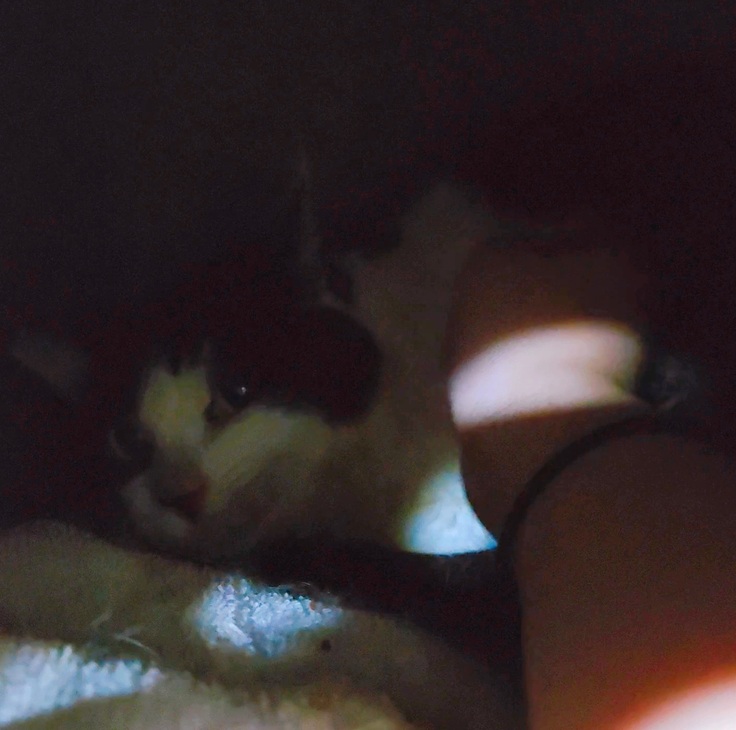 夕方のご飯をあげる少し前ですが部屋のキャットハウスの中にいるマリアちゃんを撫でてあげると頭を少し押し付けながら甘えてくれました😊