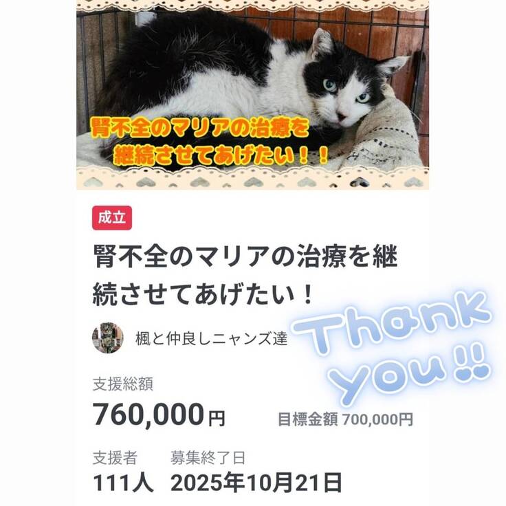 本当に今回のマリアのクラウドファンディングにお力添えを頂きありがとうございました。